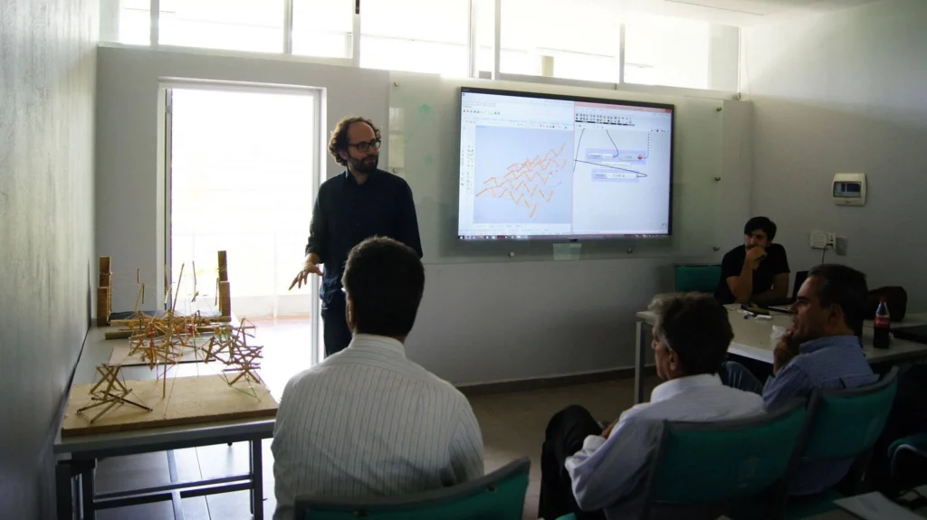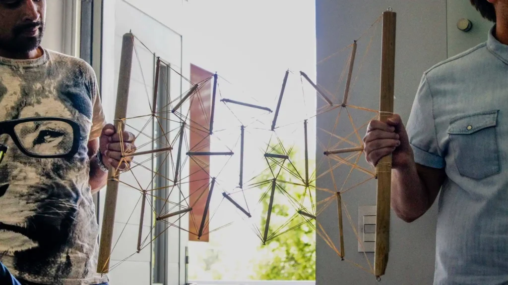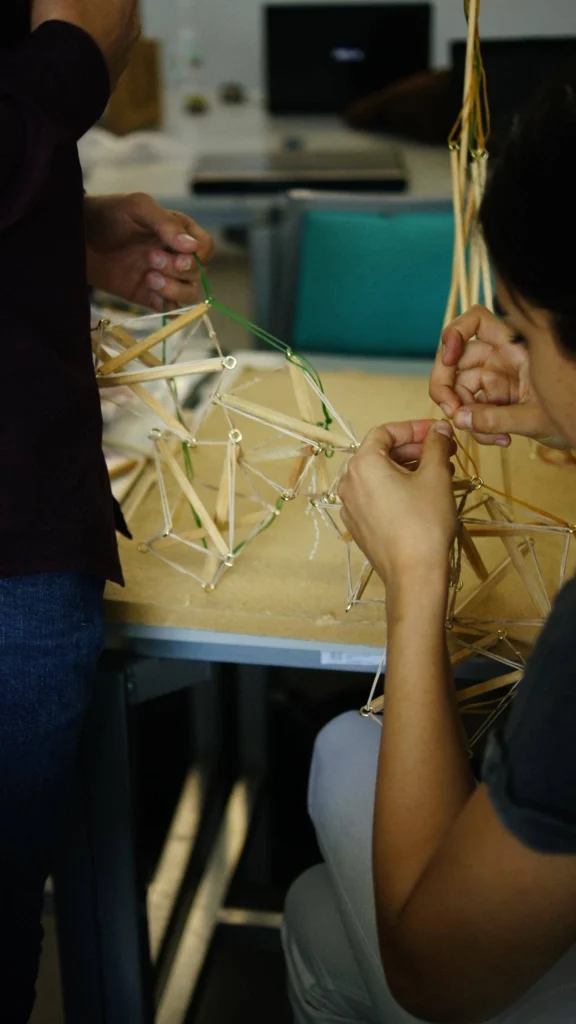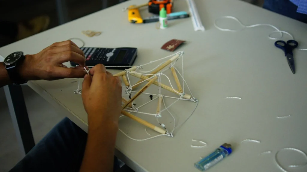 El taller fue impartido durante 2 semanas, en las que 11 alumnos exploraron el fenómeno de la tensegridad a través de metodologías híbridas, en las que se comunicaban datos y materia, por medio de procesos análogos y digitales.