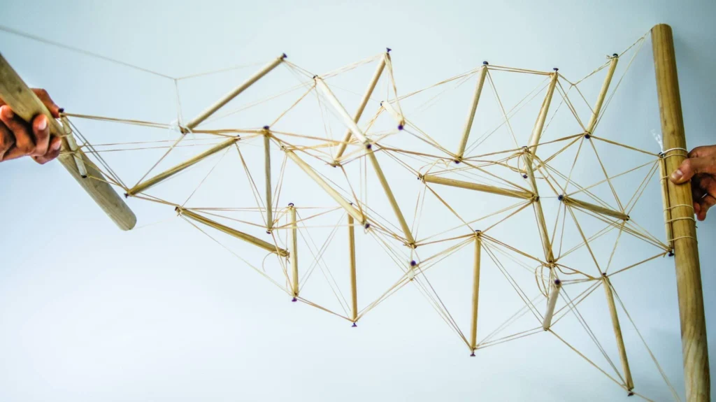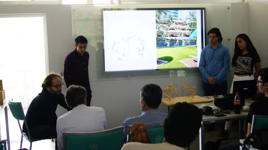 Mediante dichos procedimientos los alumnos indagaron en el comportamiento y composición de estructuras de tensegridad para producir una propuesta arquitectónica construible que sería sometida a concurso y posteriormente construida con ayuda de la experimentación de materiales, prototipado y métodos logísticos para su fabricación.