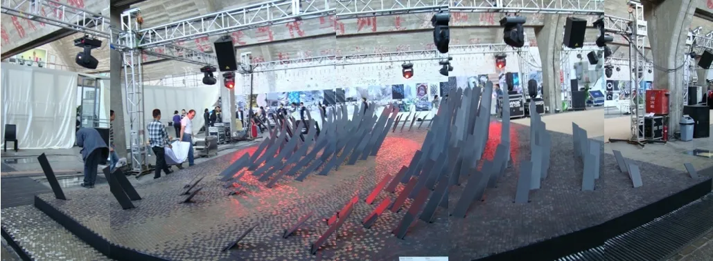 La instalación itinerante, fue presentada por primera vez en la Beijing Biennale 2010 (Machinic Process). Nace de la colaboración a distancia desde Valencia, Londres y Beijing. La cerámica fue producida en España por SALONI y ALCALATÉN, y la subestructura en Beijing.