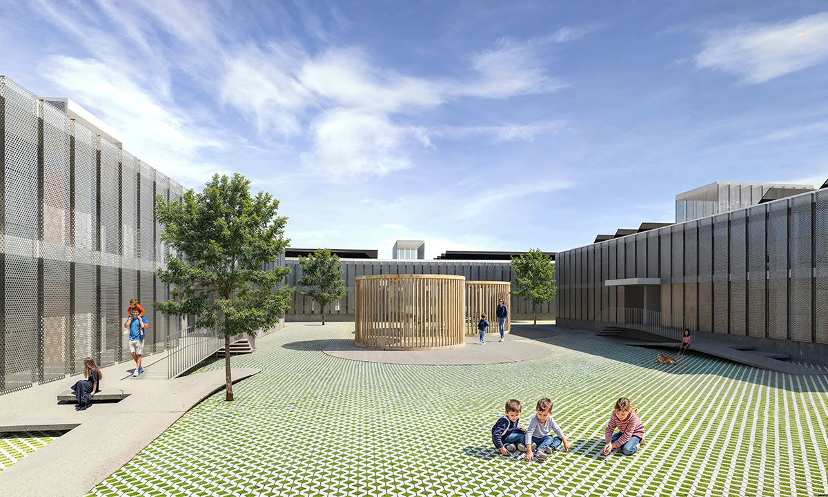• Vegetación autóctona y pavimentos permeables para mejorar el microclima y la gestión del agua.