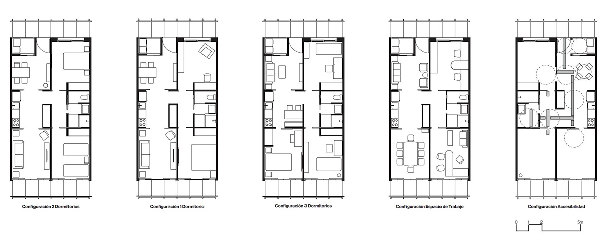 • Plantas bajas con equipamientos sociales: salones multiusos, salas infantiles y espacios adaptables para actividades vecinales.