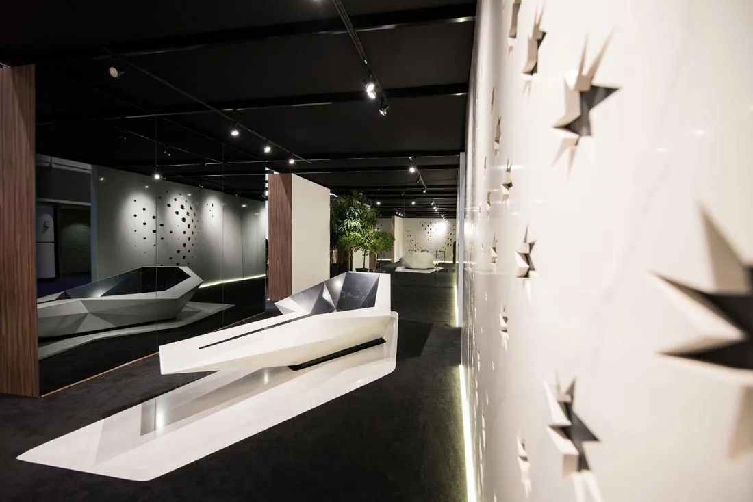 Hammam es un proyecto en colaboración con el estudio de diseño Janfri & Ranchal (Valencia), y el deseo de COMPAC The Surfaces Company (España) de presentar en KBIS 2018 (Orlando, Florida) un nuevo concepto de stand para mostrar sus últimas colecciones de cuarzo: Unique Collection e ICE of Genesis by Arik Levy.
