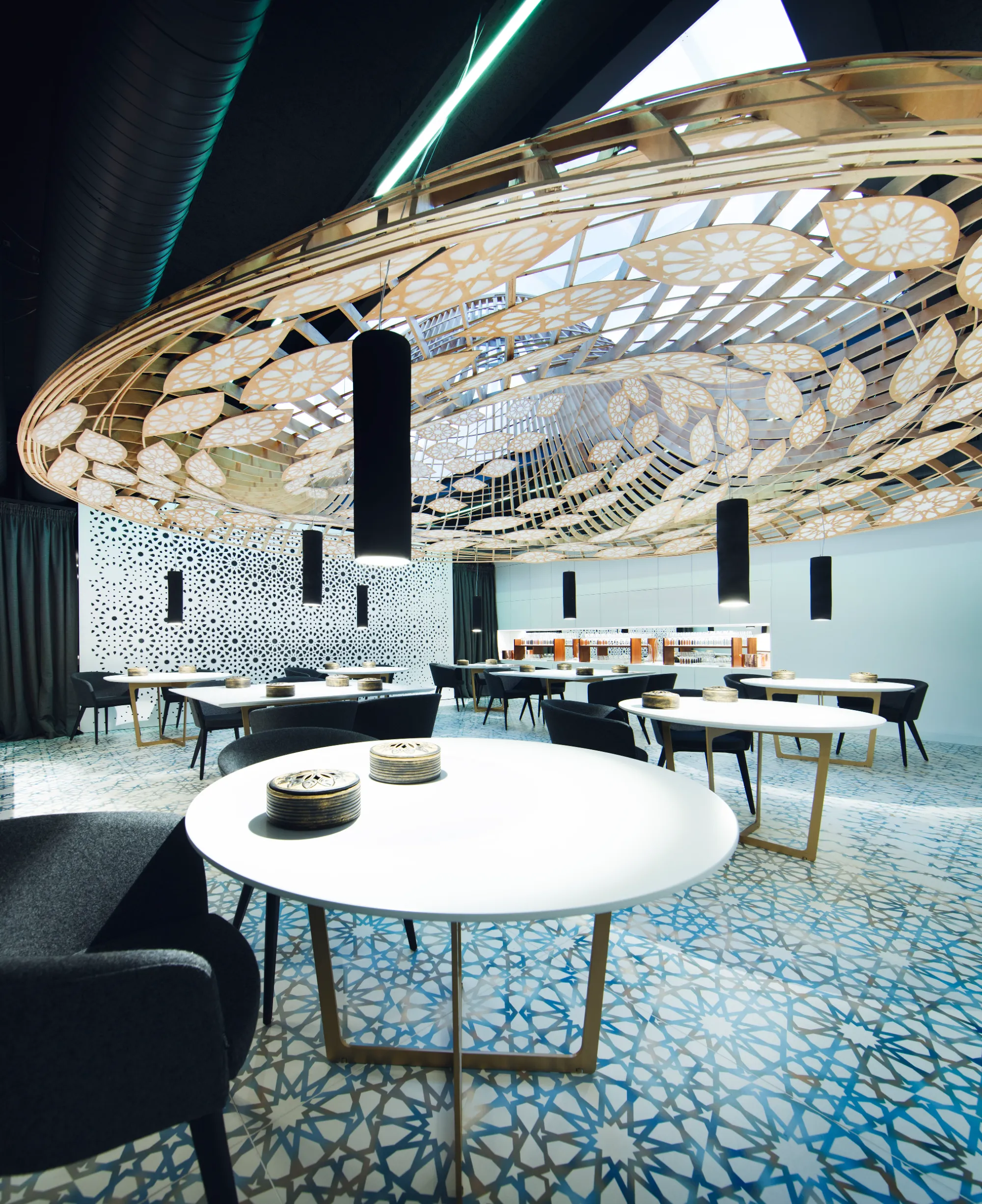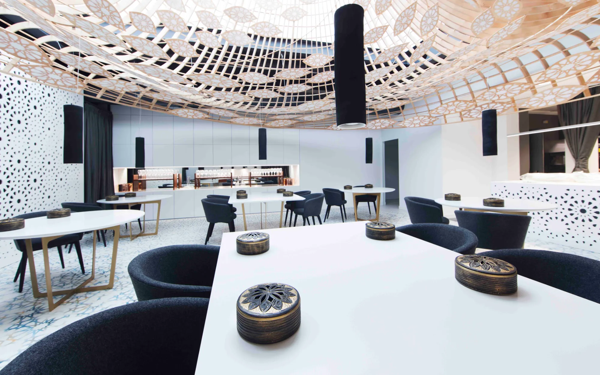 Restaurante, 2016, Diseño paramétrico, Estilo Andalusí, Arqueologías ficticias, Diseño artesanal, Cerámica impresa