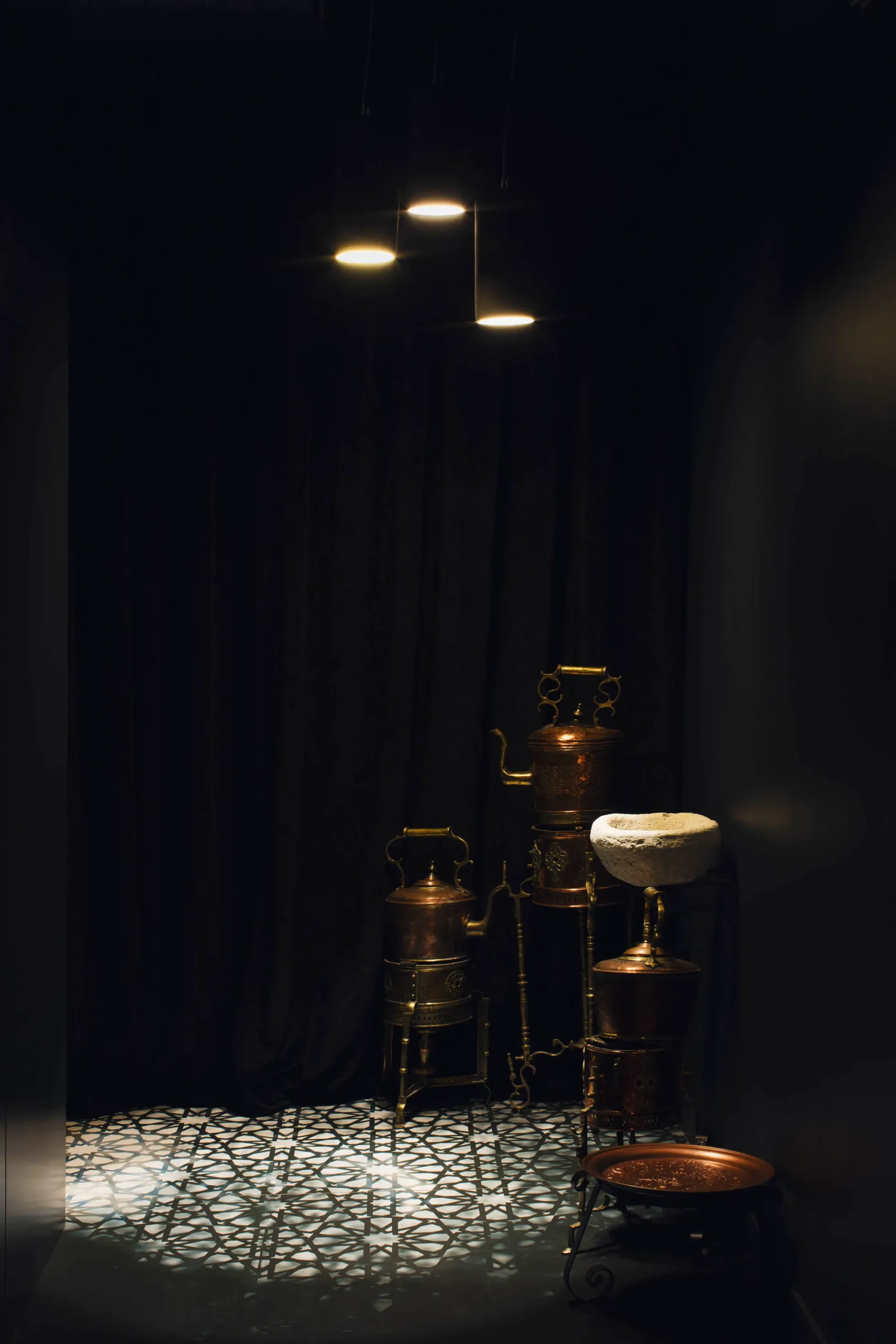 Tomamos 4 mecanismos típicos de la arquitectura árabe. Esta herencia, es reinterpretada desde un punto de vista contemporáneo y de vanguardia como punto de partida para la creación. Generando arqueologías ficticias. No hay espacio aquí para la nostalgia, todo lo contrario.