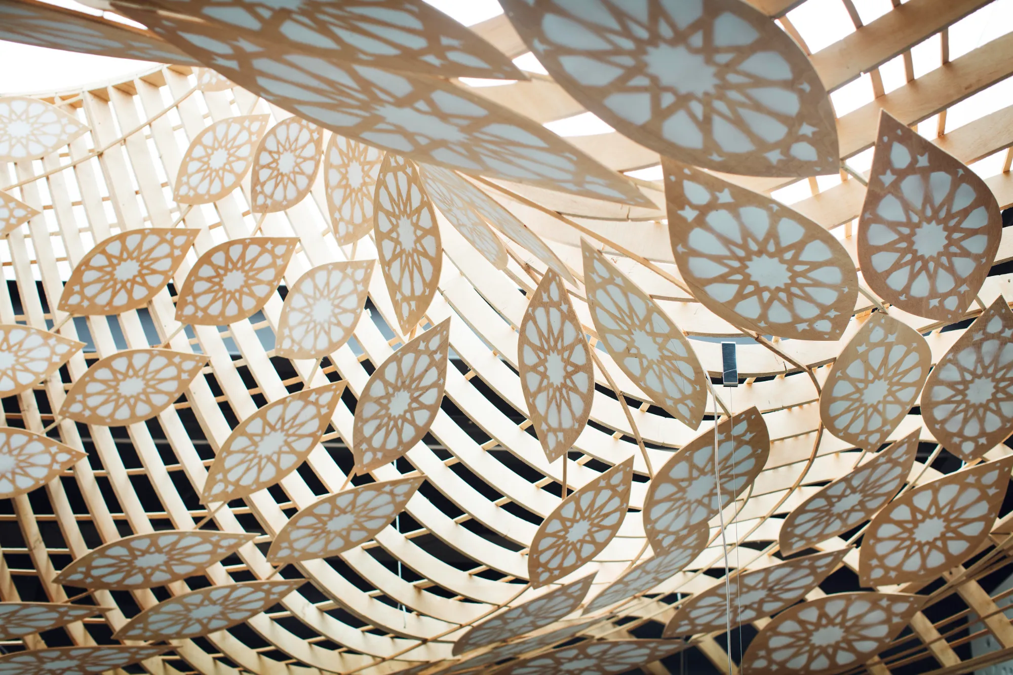 Los patrones y la geometría es clave en el arte árabe, en noor son nuestro vehículo para comunicar y añadir capas de significado, generando efectos y dinamizando el espacio. Los patrones aparecen en fachada, suelos, cúpula y paredes interiores, materializadas de diferentes maneras, pero en todas las ocasiones hemos generado herramientas digitales parametricas que nos permitían manipular y generar variaciones con los patrones, dinamizándolos y pudiendo los adaptar al entorno, aumentando su efecto.