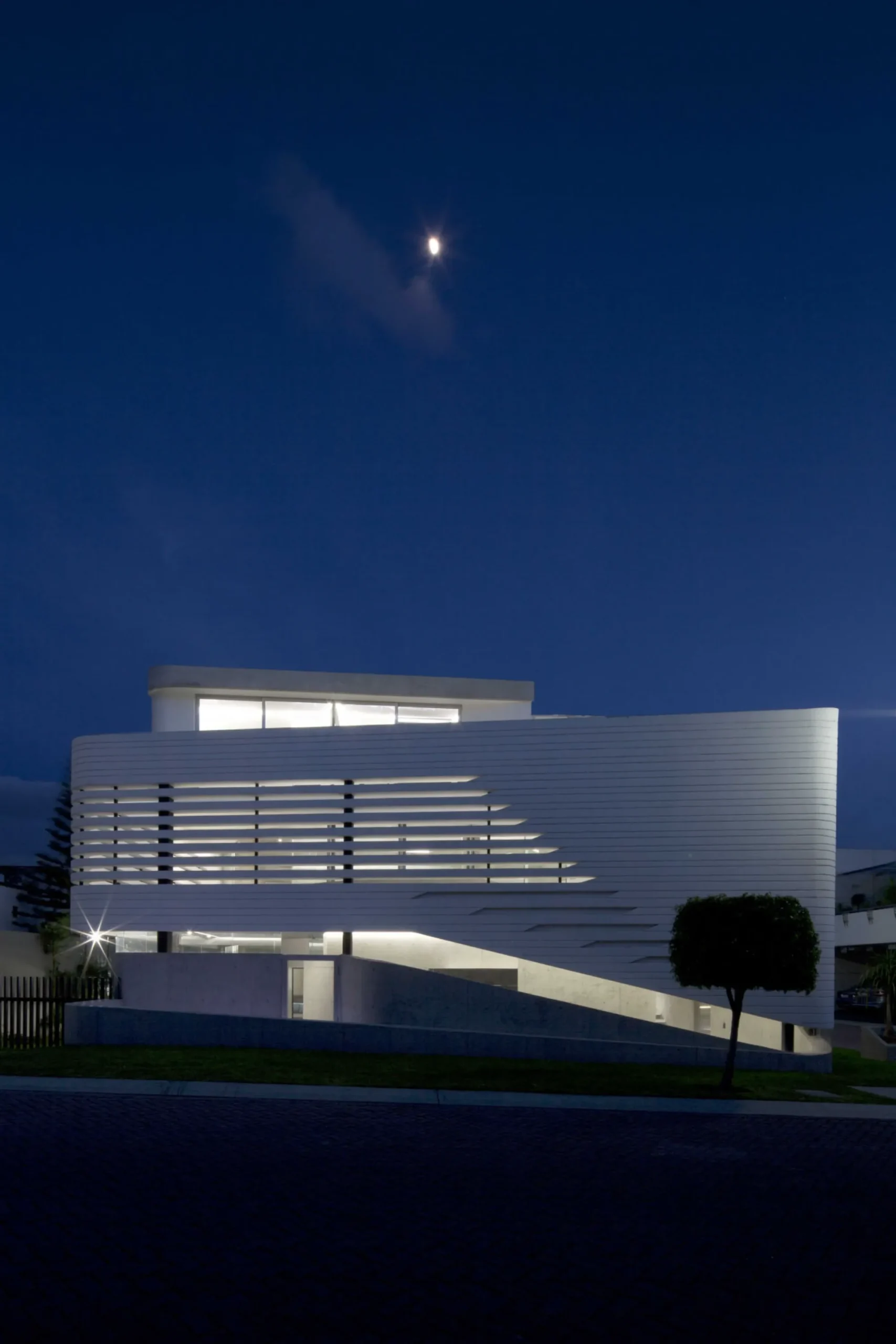 El aspecto aparentemente pesado y opaco del volumen exterior contrasta con la luminosidad, dinamismo y continuidad de los espacios interiores.