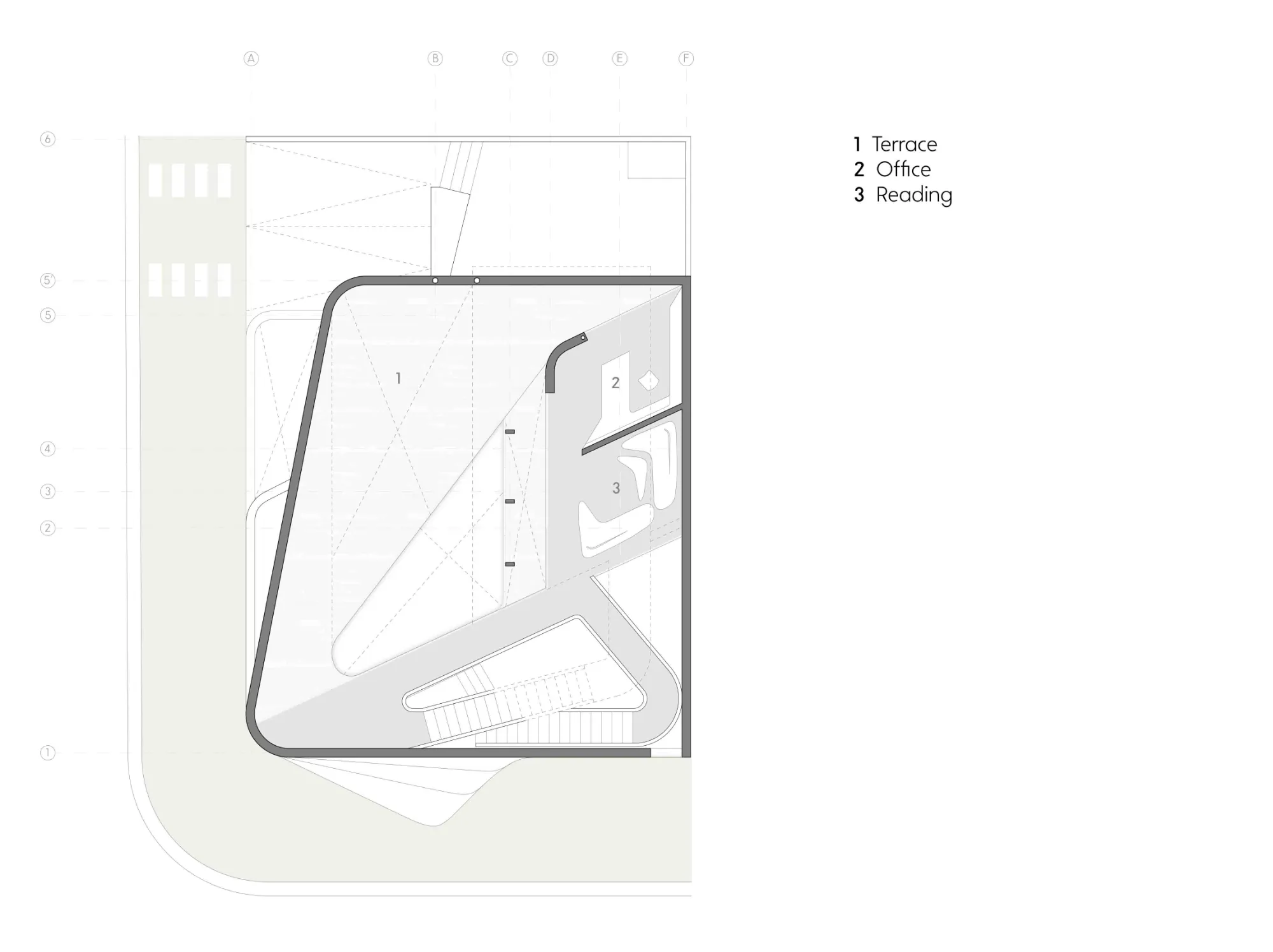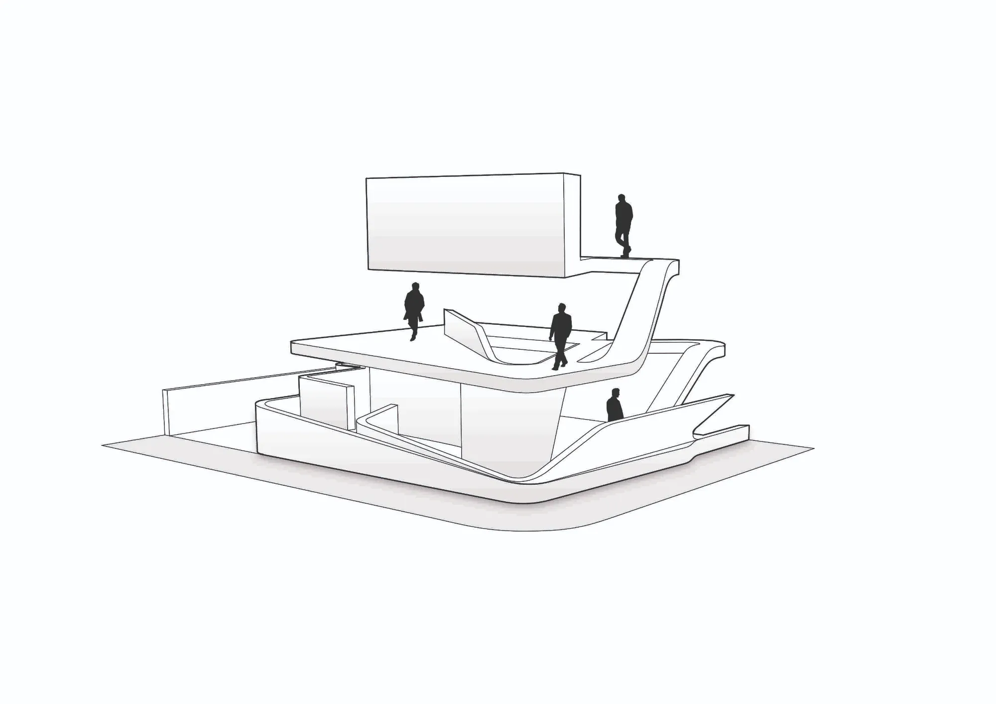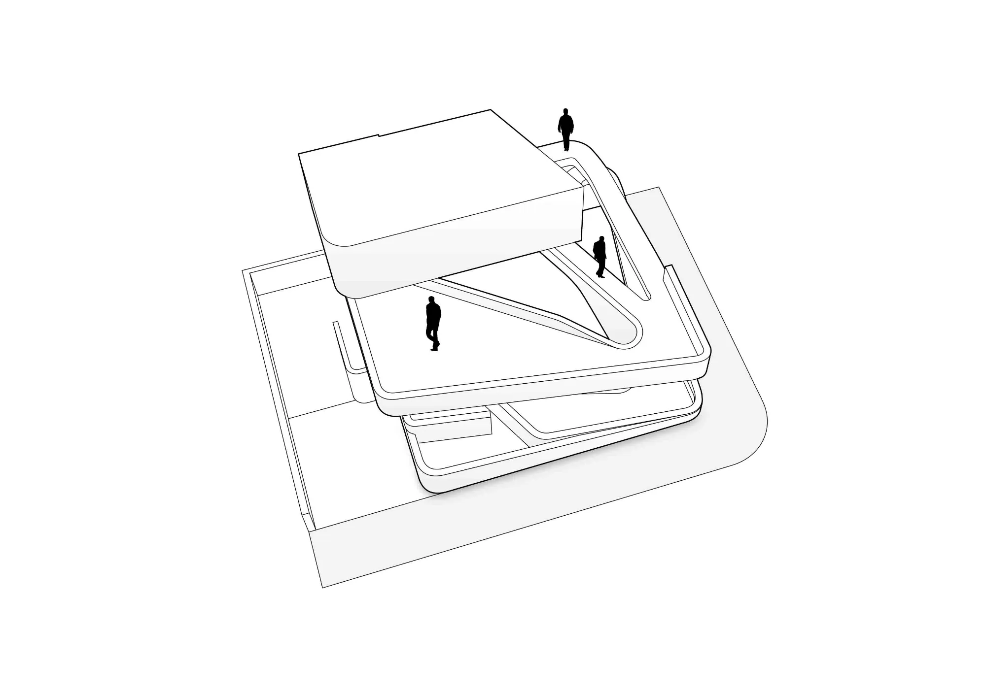El concepto del proyecto parte del desarrollo de una circulación en vórtice, que erosiona minuciosamente el volumen interior generando una serie de patios y espacios a triple altura que articulan el espacio, definiendo la composición dinámica y fluida del proyecto.